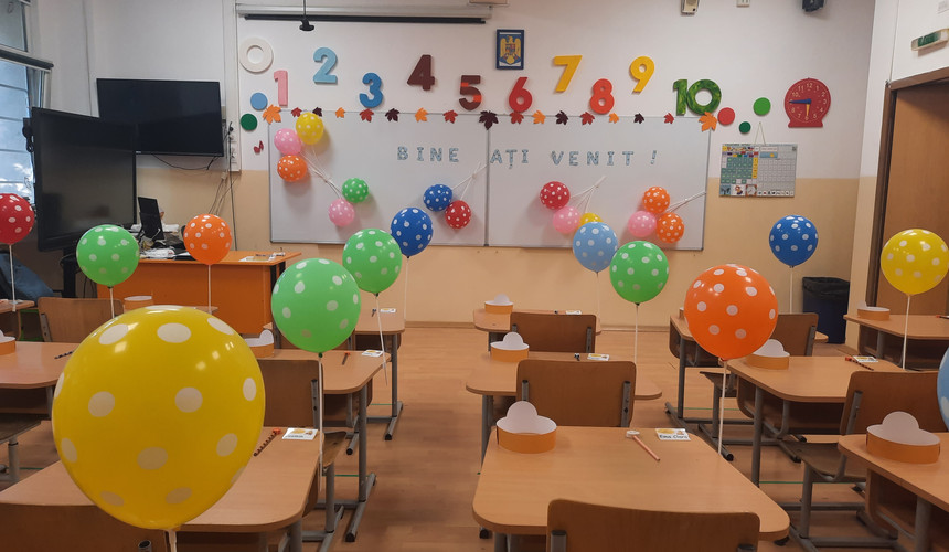 So I ordered expanded polystyrene letters - only the first three letters of the alphabet, but of the largest size (50 cm high). I had to paint them myself, so I bought tubes of acrylics and brushes of different thicknesses from Hornbach – in total, I spent a little over 200 RON. I applied two coats of color, using as little water as possible. Be careful what you wear, because inevitably some color will end up on your clothes. And no, it doesn't come out in the washing machine - I ruined a dress for good. From the same website I also ordered numbers from expanded polystyrene, from 0 to 10 (30 cm high). In total, they cost me about 250 RON, plus shipping. I painted them too, with the same acrylic colors. Although I bought 120 ml tubes in several colors (red, yellow, orange, blue, green, brown, white and black) know that I barely got enough for these few items. The styrofoam was porous and although I used very little water, two coats were required, as I said. I placed the styrofoam letters at the back of the classroom and the styrofoam numbers at the front. An idea that I, however, did not have time for, would be to attach colored leaves or maybe even paper bees to the letters, using pins.